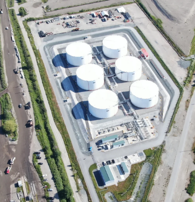 The Fuel Receiving Facility is located adjacent to the Marine Terminal, which includes six steel storage tanks with a total capacity of eighty million litres. A 500-metre pipeline transfers offloaded aviation fuel from the marine terminal to the tanks. In. addition, two new tanks were constructed at the existing tank farm at YVR.